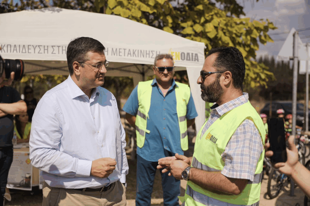Ο Περιφερειάρχης Κεντρικής Μακεδονίας, Απόστολος Τζιτζικώστας, επισκέφθηκε τη δράση της ΕΝΟΔΙΑΣ στο Πάρκο Κυκλοφοριακής Αγωγής του Κιλκίς, συνομιλώντας ένθερμα με τον Επιστημονικό υπεύθυνο της ΕΝΟΔΙΑΣ, κ. Αθανάσιο Σκορδά. Η παρουσία του υπογράμμισε τη στήριξη της Περιφέρειας σε πρωτοβουλίες της οδικής ασφάλειας και της βιωματικής εκπαίδευσης.